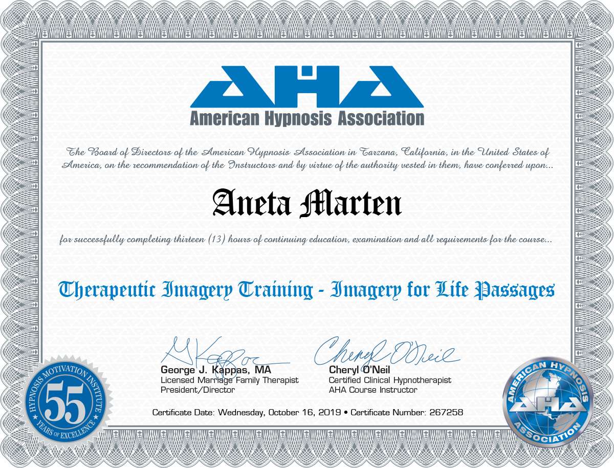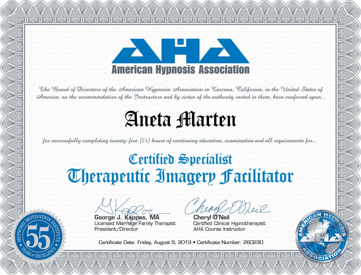 Aneta Marten is a highly skilled and compassionate hypnotherapist with many years of experience in the field. With a deep passion for helping individuals achieve their goals and transform their lives, Aneta has dedicated his career to empowering clients through the power of the subconscious mind. Are you ready to unlock the power of your mind and achieve lasting positive change? As a skilled hypnotherapist, I specialize in guiding individuals like you into a deep state of relaxation where you can tap into your subconscious mind. Whether you’re seeking to conquer fears, reduce stress, break free from harmful habits, or boost your confidence, inner-child work or healthy boundaries and relationships.I offer personalized sessions tailored to your unique goals. Together, we’ll harness the incredible potential of hypnosis to help you overcome obstacles, unleash your inner strength, and transform your life. Step into the elevator of change with me and let’s embark on a journey of self-discovery and empowerment. Together we can take all your challenges to changes.