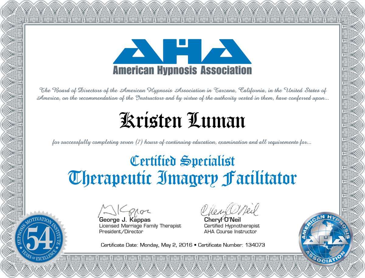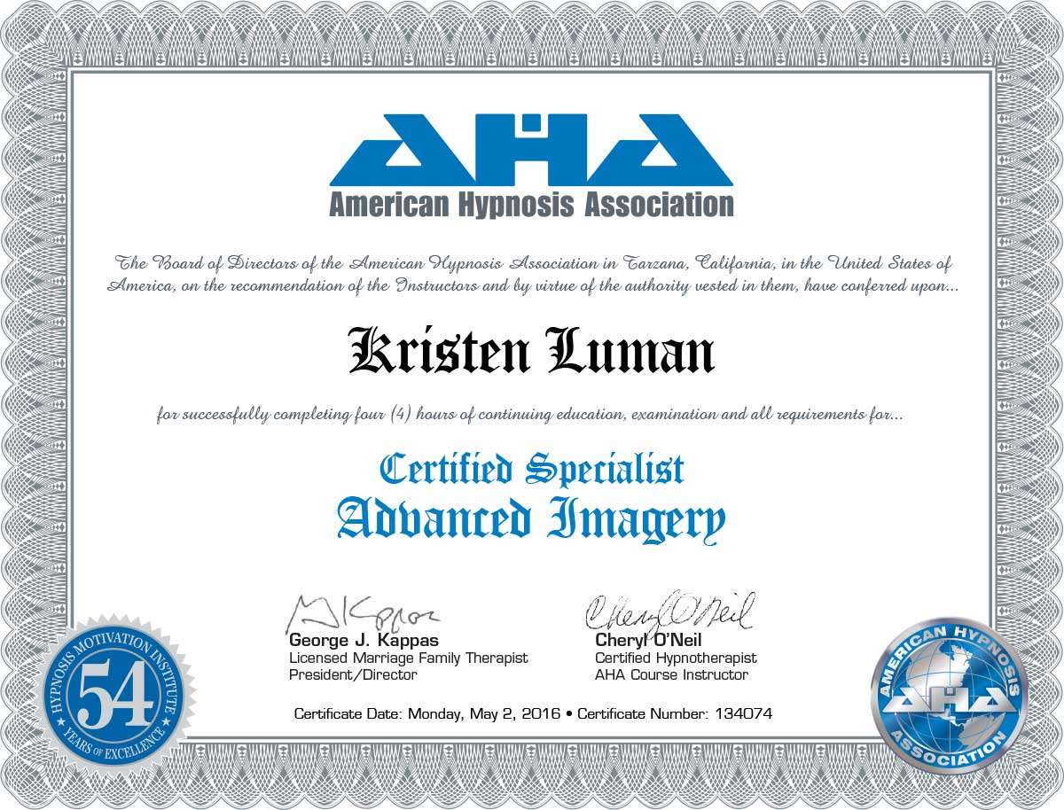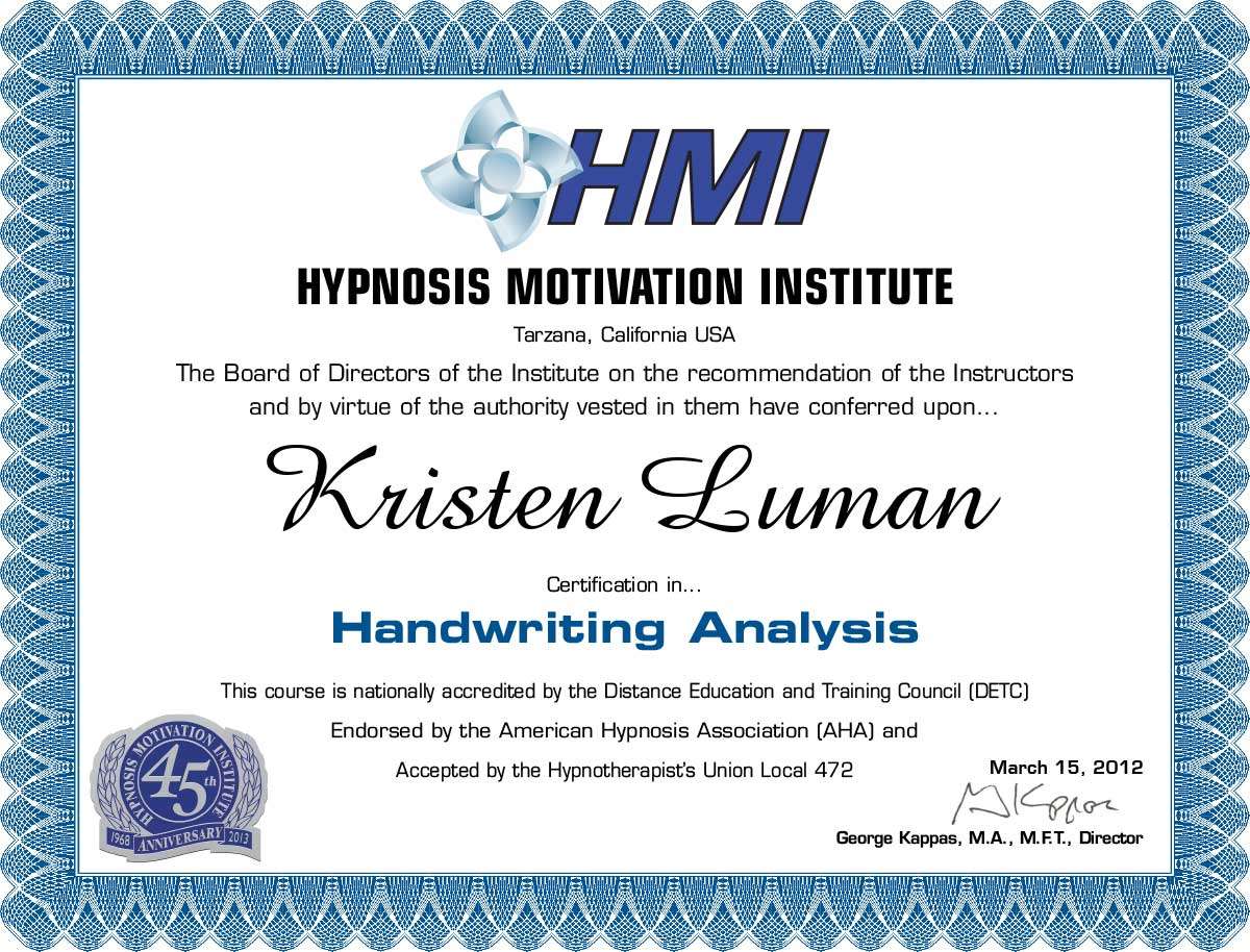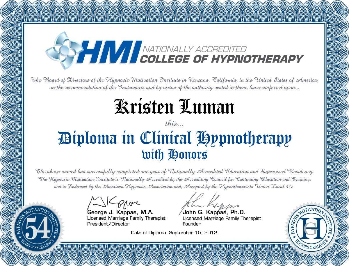 Additionally, her interest in psychosomatic conditions has led her to receive special certifications in stress reduction and pain management; she is also an avid user of NLP, the Eriksonian school of thought, and guided imagery. Believing that anything can be achieved with the power of belief is what drives her. HMI has hired Kristen both during schooling and after graduation; there she helps educate new students as well as presents news about upcoming events for the college or hosts seminars for the American Hypnosis Association.