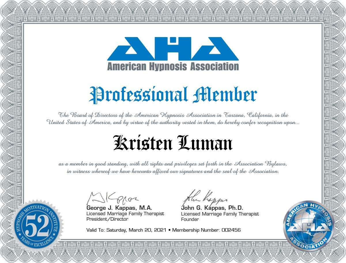 After earning her BA in Psychology from Portland State University with a focus on Human Development and Parapsychology, Kristen went on to study at the Hypnosis Motivation Institute College of Hypnotherapy.